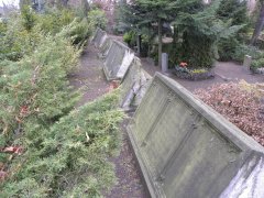 Das Foto zeigt die Gedenksteine mit den Namen der Toten auf dem Zittauer Frauenfriedhof.